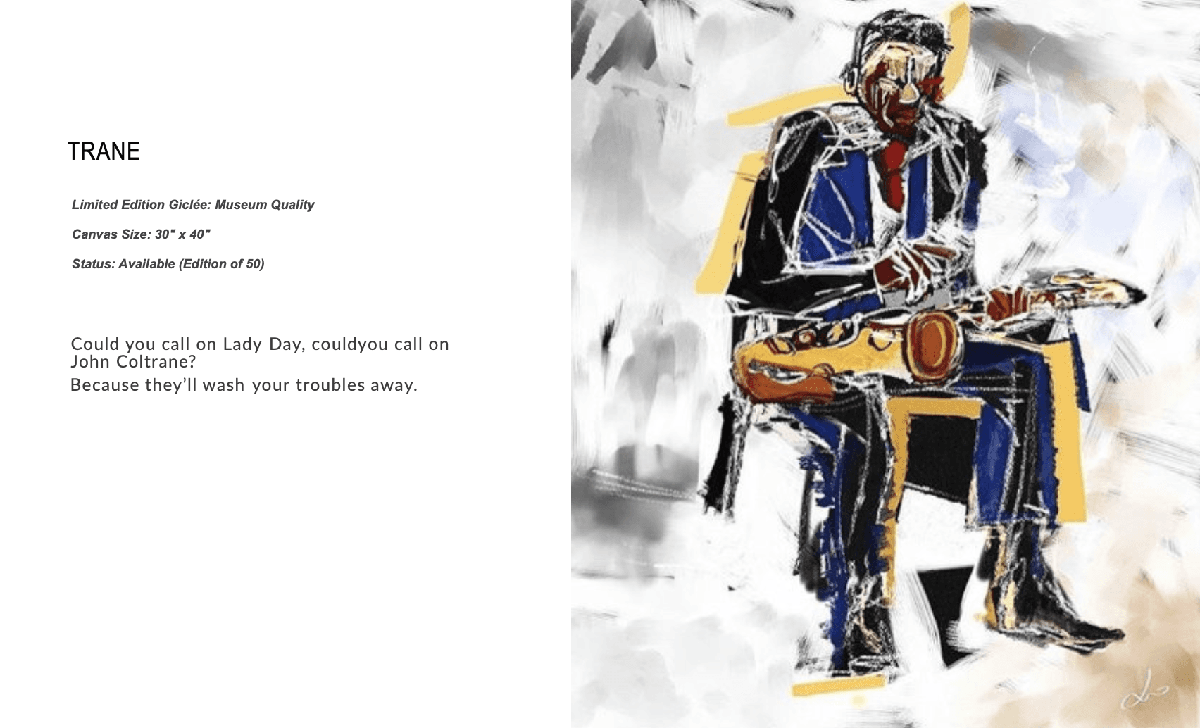 A visual hymn to the master. 'Trane' captures the spiritual intensity of John Coltrane in a frenzy of blue, black, and gold. This piece is the visual equivalent of a saxophone solo. Chaotic, rapid, yet perfectly structured. The brushwork mimics the improvisation of bebop, washing over the viewer with the same healing power as the music itself. As Lionel Thomas’s most collected work, this edition resonates with those who know that jazz is a cleanser for the soul.